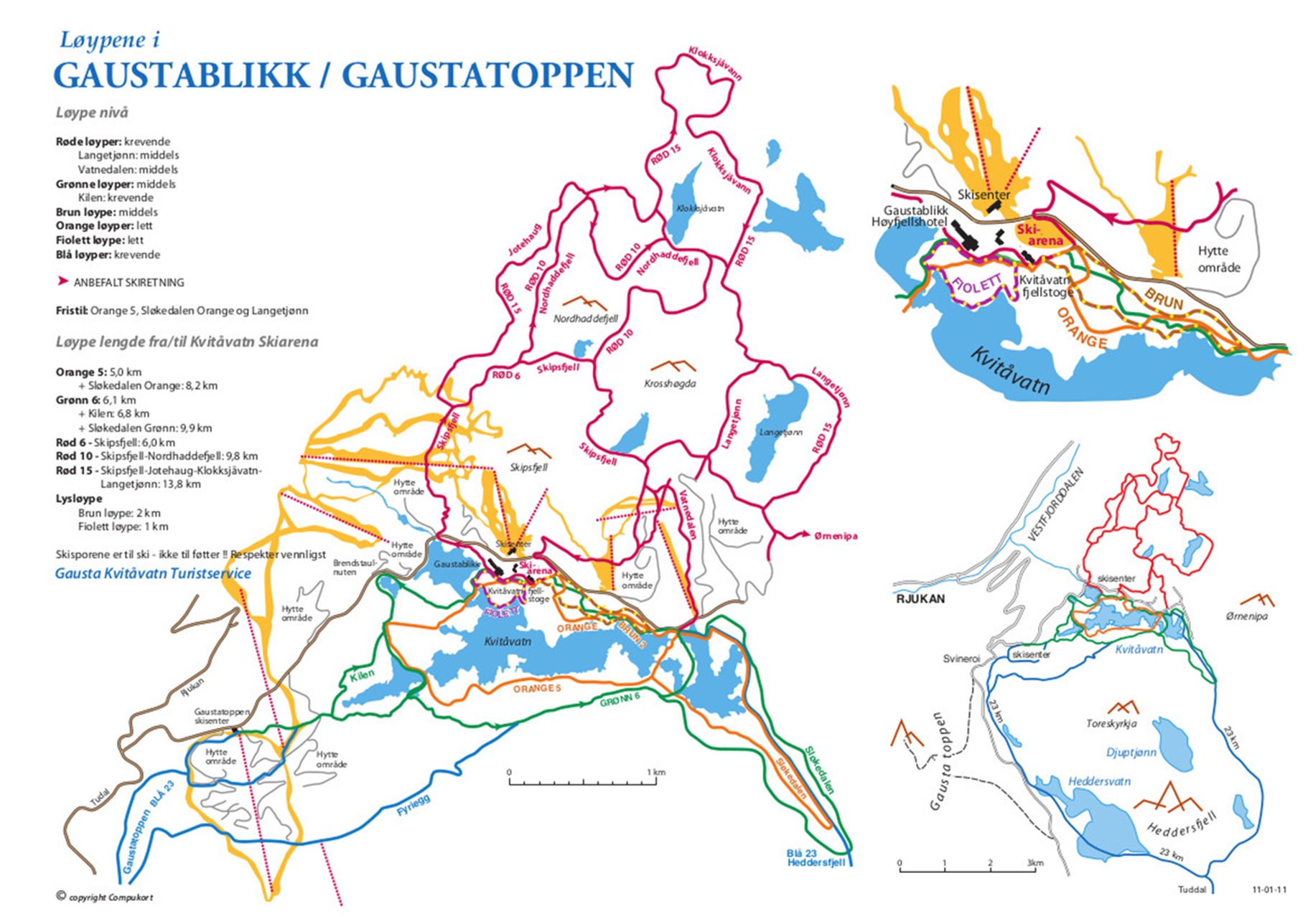 Gausta har en mångfald av spårprofiler i grön, blå och röd svårighetsgrad. Spåren går runt Kvitåvatn eller upp mot högfjället. Vissa spår är belysta på kvällen och vilar på välanlagda grusvägar som fungerar som sommarvägar under andra delar av året. Andra spår är mer utmanande och sträcker sig långt över trädgränsen, där du kommer nära naturen.