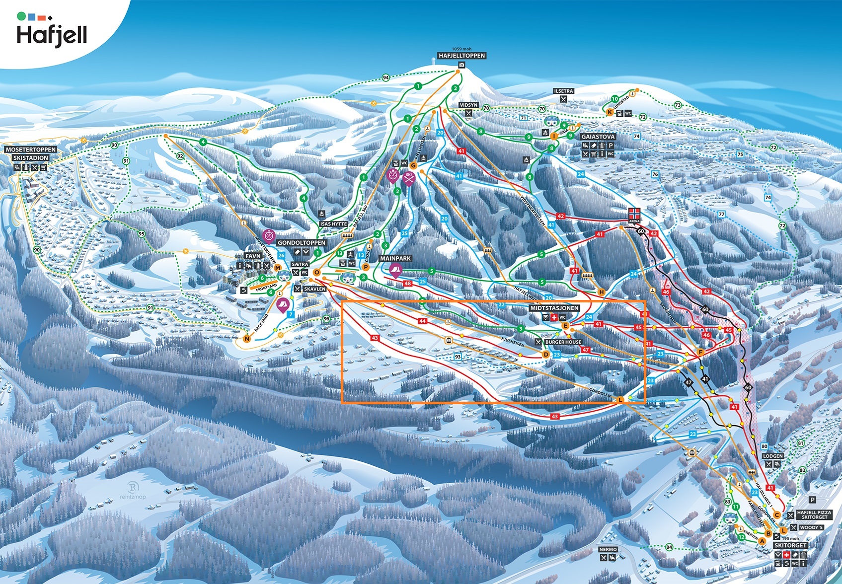 Mittområdet i Hafjell är ett paradis för skidentusiasten, här bor du centralt i skidanläggningen med backarna precis utanför dörren. Populära boendealternativ i Mittområdet är Hafjell Fjellandsby, Kjusgrenda och Jaertunet. Kort avstånd till Gondolens Mellanstation och Skavlen Restaurant.