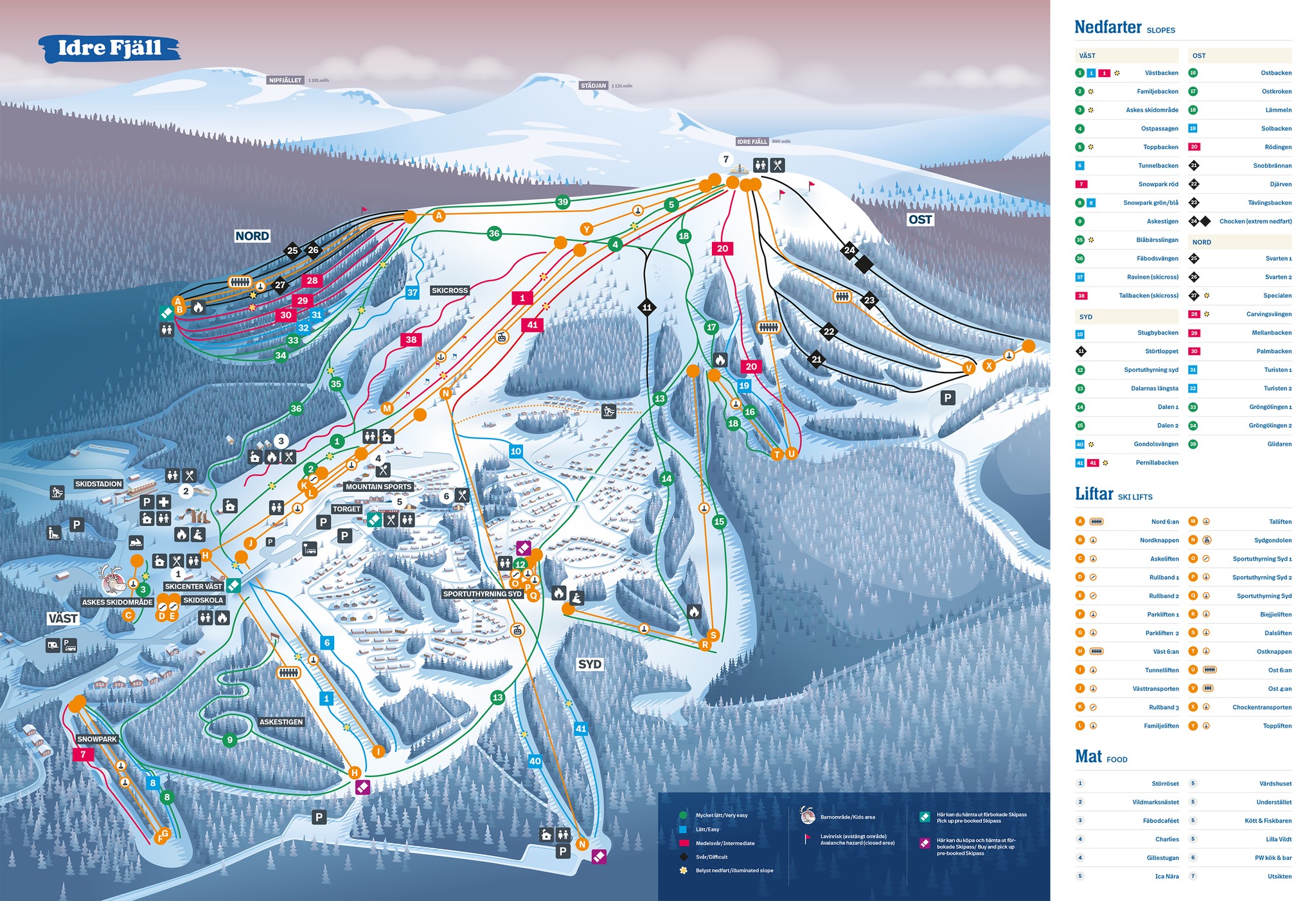| Skidbackar: 40 | Barnområde: 2 st | Högsta fallhöjd: 304 meter | Skiduthyrning: 2 st |