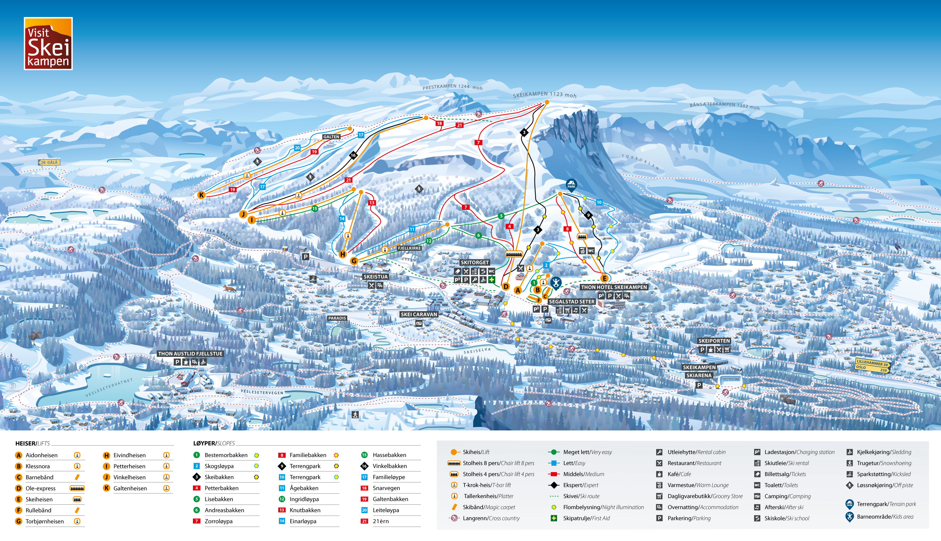 Några mil norr om Lillehammer är Skeikampen beläget, en pärla för dig som uppskattar ren fjälluft och närhet till naturen. I Skeikampen finns 10 liftar samt 21 nedfarter. Detta ger en liftkapacitet på 10 000 personer i timmen och så mycket som 21 kilometer nedfarter.