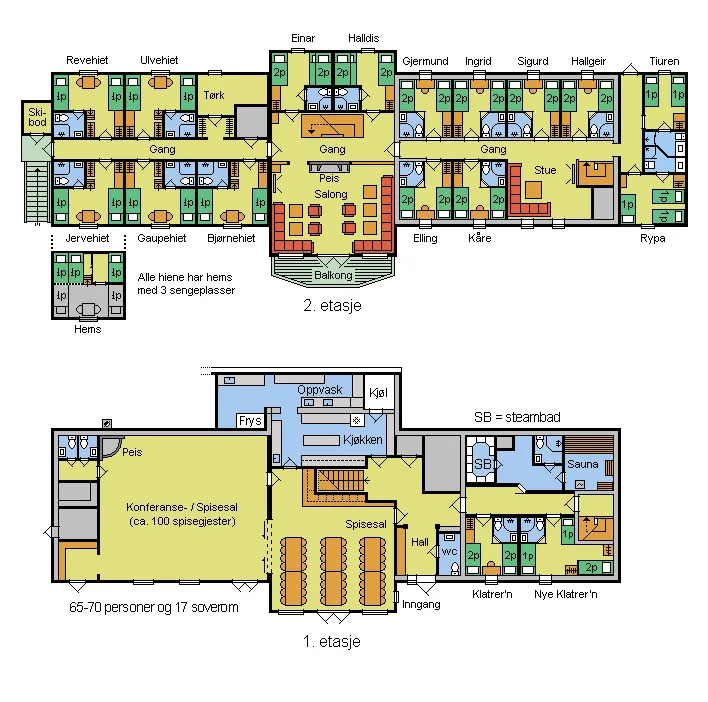 600 m² / 65–69 personer / 15 sovrum med badrum / 19 toaletter / 2 vardagsrum / Matsal / Matplats för ca 100 personer / Bastu / Torkrum / Storkök / Skid-/vallarum / Byggår: 1994 / Rökning: Nej / Husdjur: Kontakta oss / 473 meter över havet / 300 meter till Laaven (after-ski) / GPS: 61.305975, 12.237978