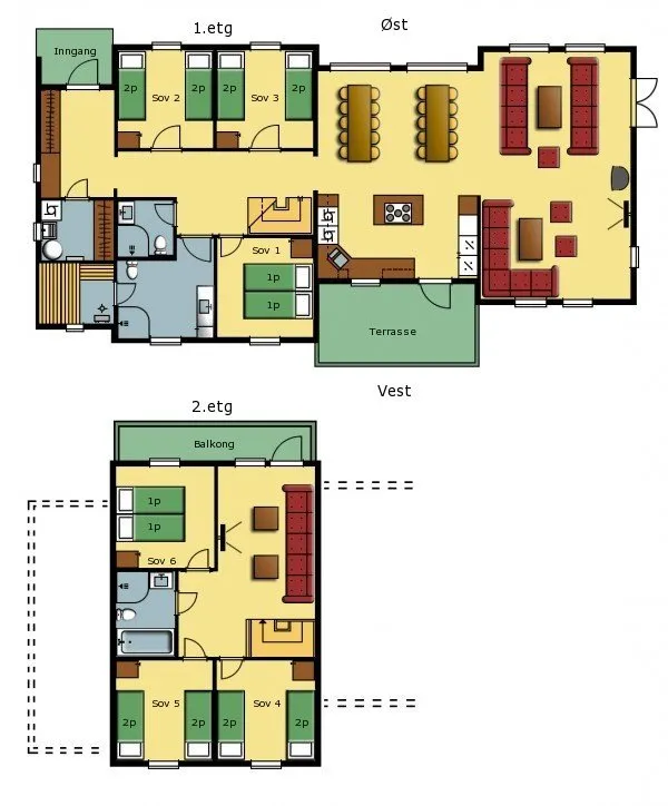 200 m² / 20 pers / 6 sovrum / 3 badrum / 2 allrum / Matsal / Bastu / Tvättstuga / 709 möh / Rökning: Nej / Husdjur: Nej