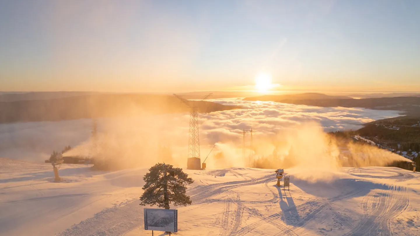 50 centimeter snö från en snökanon motsvarar nästan 130 centimeter natursnö i hållbarhet. Detta medför att våra skidorter kan hålla öppet till sent på våren.